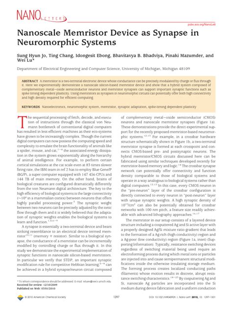 Download nanoscale memristor device as synapse in neuromorphic systems Doc Google eBookstore